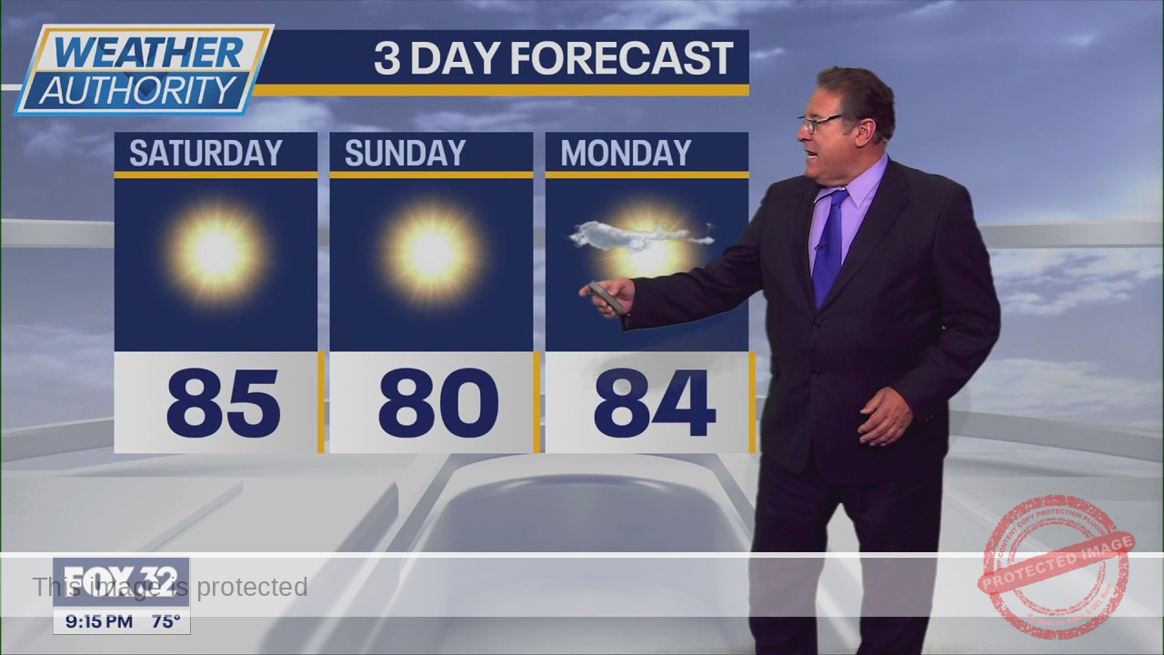 Temperatures are forecast to peak around 85 degrees Saturday, well above the typical early-fall highs in the low 70s. Conditions will remain mostly sunny and dry, with clear skies and comfortable humidity levels.