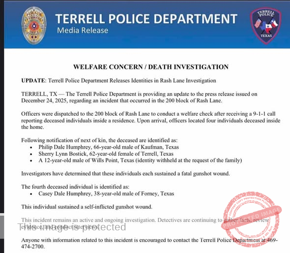 TERRELL, Texas — A quiet and friendly neighborhood on Rash Lane was turned upside down on Christmas Eve when police discovered four people dead inside a home during what was supposed to be a routine welfare check. The discovery has left residents stunned and searching for answers in the aftermath of a holiday meant for peace and family.
