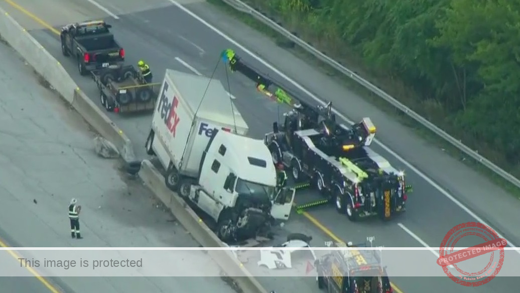 HAMMOND, Ind. – Traffic on the Indiana Toll Road was heavily disrupted Thursday morning after a FedEx truck crossed the median and collided with a pickup.