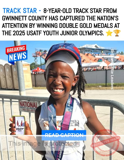 Gwinnett County, GA — Hope Bradley, an 8-year-old from Gwinnett County, has made a big splash in the world of track and field by capturing two gold medals and one silver at the 2025 USATF Youth Junior Olympics, held from July 21 to 27, 2025. Competing against the best youth athletes from across the country, Bradley’s stellar performances have made her one of the brightest young stars in the sport.