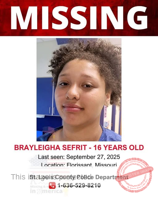 Sixteen-year-old Brayleigha Sefrit has been missing since September 27, 2025, from Florissant, Missouri. Authorities are asking for the public’s help in locating her, as she may still be in the local area or could have traveled to Columbia, Missouri.