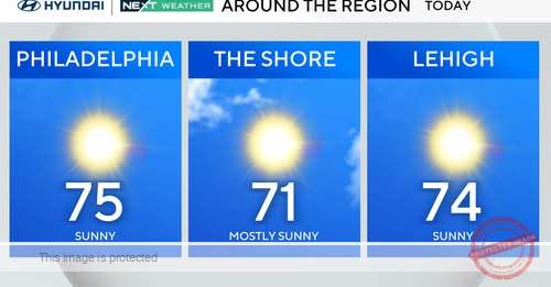 By Wednesday, the coastal low will spread clouds into the Philadelphia area with a chance of a few showers at the shore and possibly interior South Jersey. Skies stay mostly cloudy with highs in the low 70s, though more sun may break through the farther north you head.
