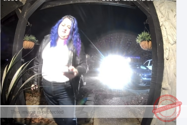 Concerned and confused, Mark reviewed the couple’s doorbell camera footage. What he saw was chilling: the DoorDash driver, a woman with distinctive blue hair, set the food bag down, snapped the usual delivery confirmation photo, and then pulled an object from her pocket — an apparent spray canister — and released a fine mist onto the bag before walking away.