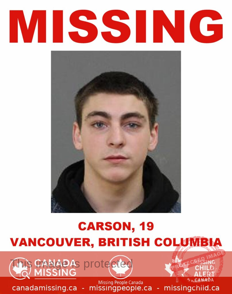 Carson is described as a 19-year-old male, approximately 5’10” in height with a slender build. At the time of his disappearance, he was using crutches, which may assist in identifying him. He was last seen around the Granville Street area of Downtown Vancouver, and it is believed that he may be using public transit.