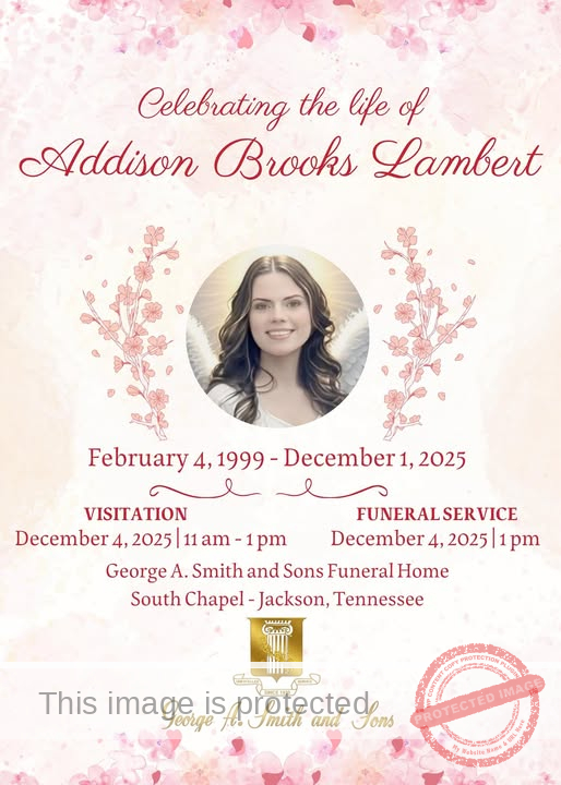 Jackson, TN – December 2, 2025: The Jackson, Tennessee community is grappling with the heartbreaking loss of Addison Brooks Lambert, a beloved figure whose passing has left a profound void in the lives of family, friends, and all who knew him. Addison’s life was a reflection of warmth, generosity, and an unwavering commitment to those around him. His memory will continue to inspire and comfort all who were fortunate enough to cross paths with him.