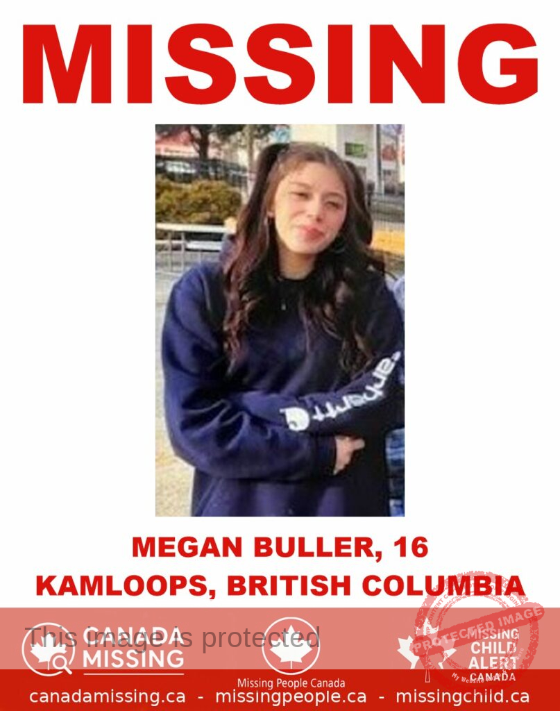 Kamloops authorities are asking for the public’s assistance in locating 16-year-old Megan Buller, who has been reported missing after last being seen in the Sahali area on the evening of August 19, 2025. Concern is growing for her well-being.