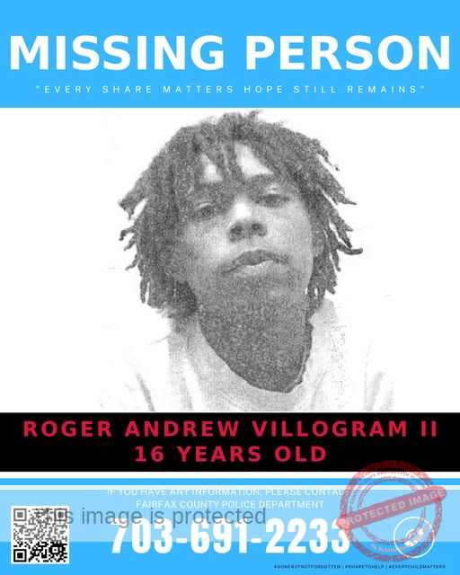 Fairfax County, VA | October 1, 2025 : Authorities are urgently seeking the public’s help to locate 16-year-old Roger Andrew Villogram II, who has been missing since October 1, 2025, from Fairfax County, Virginia. Roger has medical conditions that require medication, and there are growing concerns that he may be in need of medical attention.