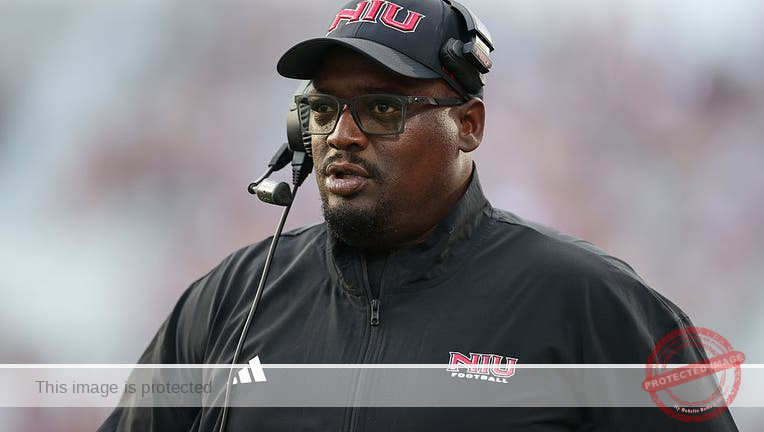 STARKVILLE, MISSISSIPPI – SEPTEMBER 20: Thomas Hammock, Head Coach of the Northern Illinois Huskies, is seen against the Mississippi State Bulldogs at Davis Wade Stadium on September 20, 2025 in Starkville, Mississippi. (Photo by Randy J. Williams/Ge