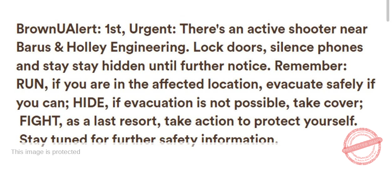 The first BrownUAlert was stark and urgent: “There’s an active shooter near Barus & Holley Engineering. Lock doors, silence phones and stay hidden until further notice.” It reminded everyone of the now-familiar guidance of Run, Hide, Fight — urging those in danger to flee if possible, hide if not, and only fight as a last resort. That message set the tone for what would become hours of uncertainty for a campus community already stressed by the end-of-semester environment.