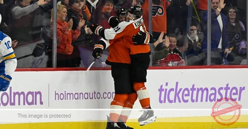 The Flyers rallied last week from deficits of 1-0, 3-1, and 5-3 before they beat St. Louis 6-5 in a shootout. The Blues also lost their next two games to Vegas and Toronto and have now lost four straight.