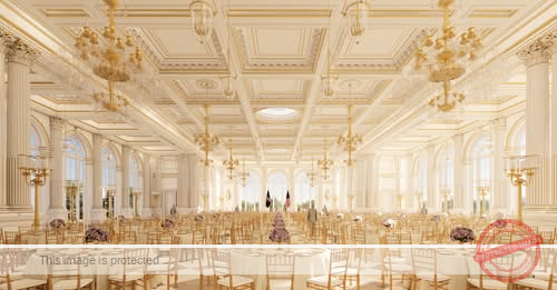 According to a release from the Trump administration, the ballroom will be approximately 90,000 square feet of “innately designed and carefully crafted space” with a capacity for 650 people sitting down, an increase from 200 people in the East Room of the White House.